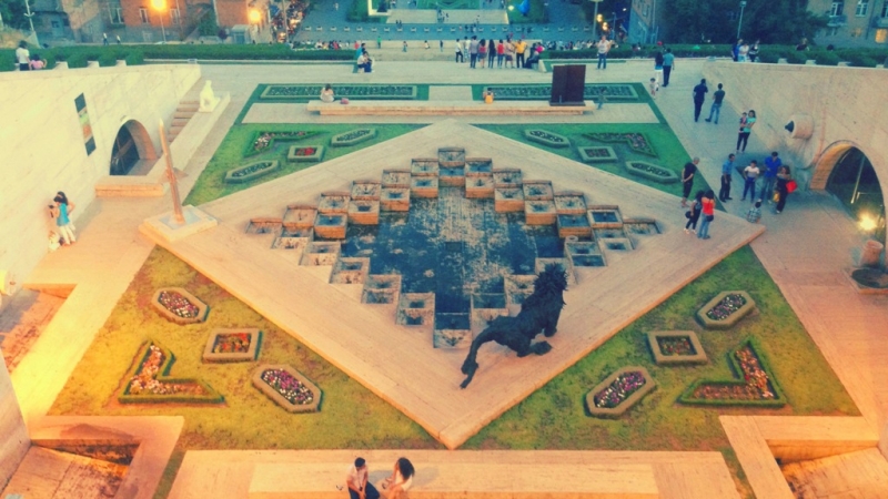 Desayuno en el hotel. Caminando a través de Ereván visitando los lugares de interés de la ciudad antigua. Visita de la Cascada, que se considera el centro del arte moderno de Ereván, exhibición del arte por todo el territorio: desde el bulevar hasta las escaleras, desde lo alto de las escaleras puedes disfrutar de la vista panorámica sobre la ciudad y la montaña Ararat. La Cascada es el centro de Artes Cafesjian dedicado al arte contemporáneo. Este lugar se hace aun más fascinante por la noche, cuando está lleno de la gente local y los turistas de todo el mundo, disfrutando de la magia y el calor de la capital. Podrás disfrutar su tiempo en uno de los cafés al aire libre rodeadas de hermosas esculturas y flores fragantes de colores mágicos. También es un lugar popular de conciertos al aire libre en el verano.