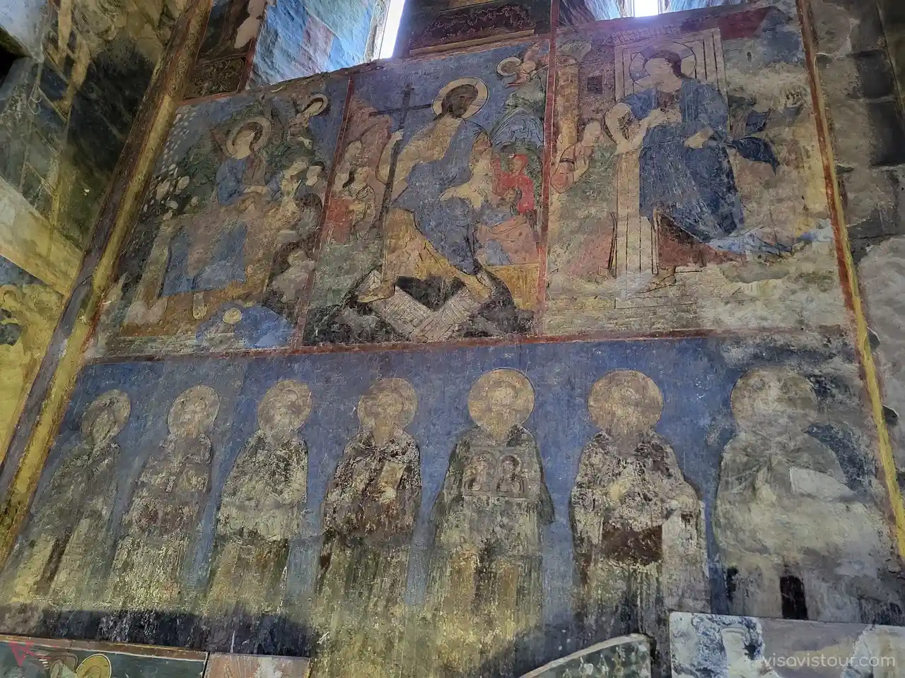 The main church, St. Astvadzatsin (Holy Mother of God), was commissioned by Ivaneh Zakarian, the esteemed commander of the Armenian-Georgian state, in the early 13th century. Within its walls, the frescoes showcase a unique blend of artistic styles: while the more recent frescoes reflect 13th-century Byzantine influences, earlier ones, dating back to the 11th century, resemble the intricate miniature paintings found in the Mughni Gospel manuscripts. Nearby, other historic churches from the 13th century, including St. Trinity, St. George, and the Twin Churches, offer additional insights into the region’s spiritual and architectural heritage.