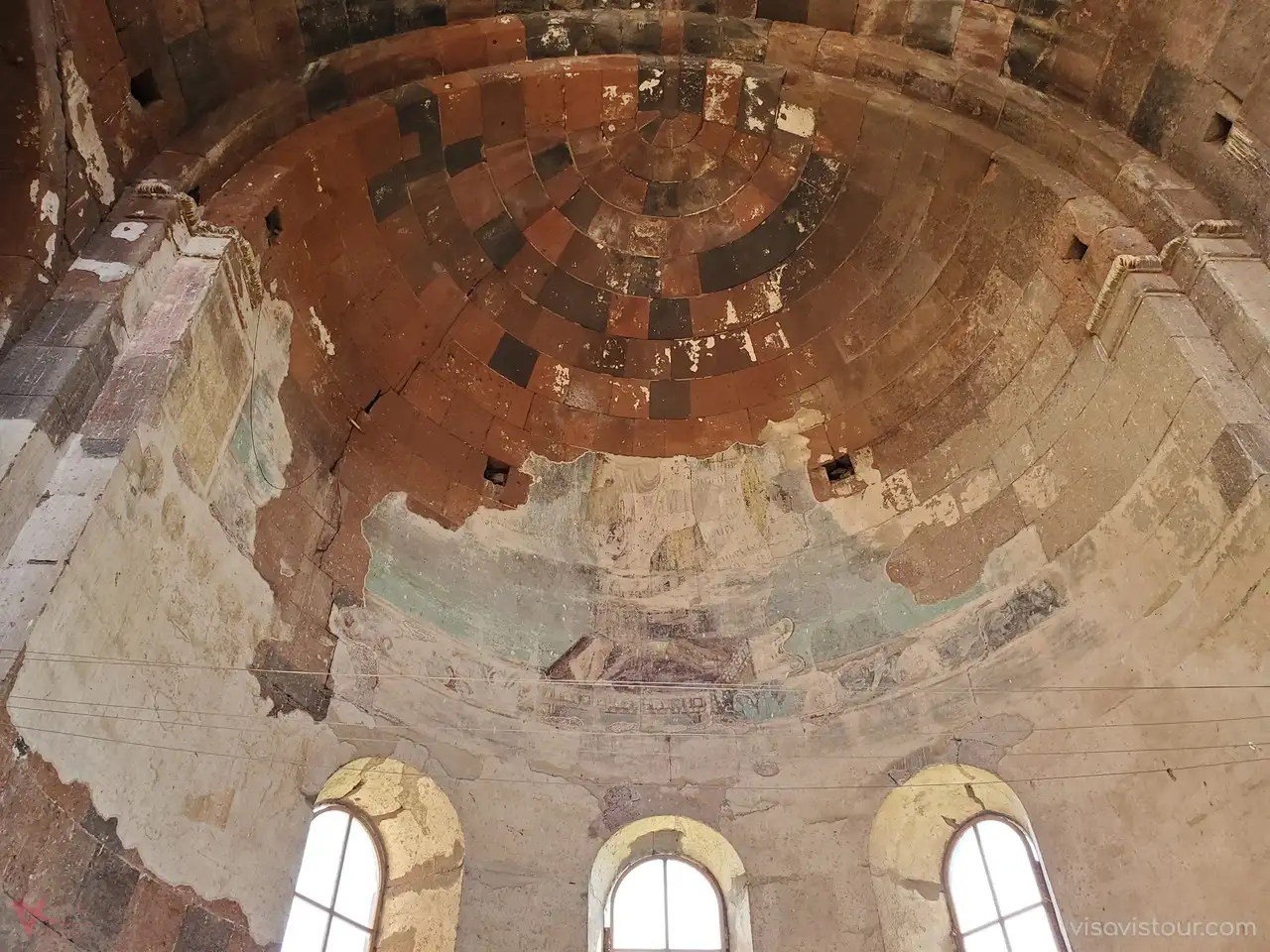 Nestled just 40 kilometers from Yerevan, Aruch is one of Armenia’s oldest continuously inhabited villages, with historical mentions as far back as the 5th century. Originally, Aruch served as a winter residence for the Royal Army of Armenia, and by the 7th century, it became the official residence of Duke Gregory Mamikonyan. Here, Duke Mamikonyan commissioned the impressive St. Gregory Church, which still stands today as a testament to Armenian medieval architecture. While the church was originally adorned with intricate frescoes both inside and out, a few of these beautiful artworks have withstood the test of time.