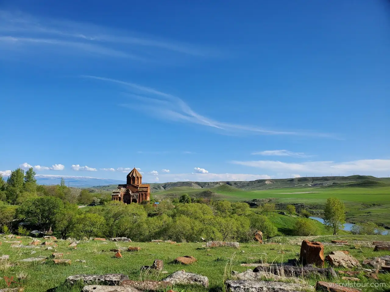 Nestled along the scenic banks of the Akhuryan River, the Marmashen Monastery is an impressive medieval complex built by Duke Vahram Pahlavuni. Construction began in 986 and concluded in 1029, resulting in a grand site characterized by its domed main church, known as Katoghike. The church’s facades are adorned with triangular niches, lending a sense of movement and intricacy to the structure. Marmashen is crafted from Armenia’s iconic red tufa stone, which stands in stunning contrast against the blue sky, creating an enchanting visual experience.