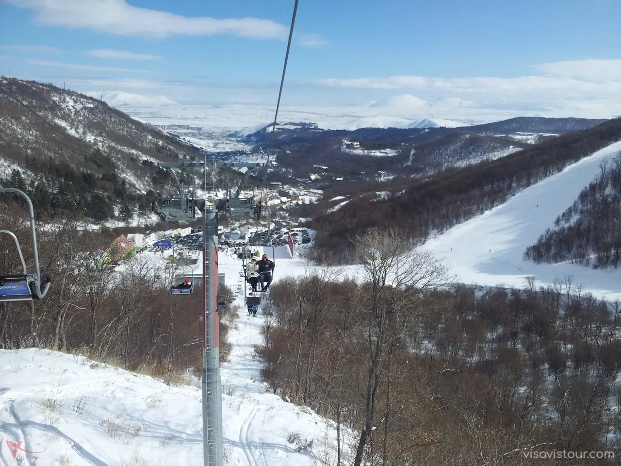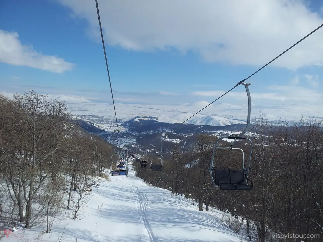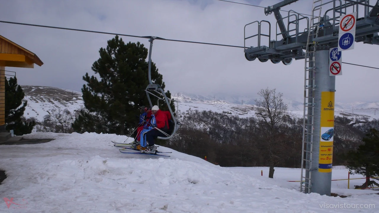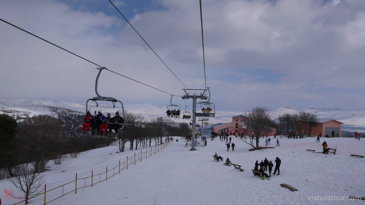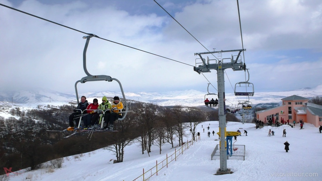 Tsakhkadzor, which means “gorge of flowers” in Armenian, is famous for its shady forests and flowering meadows, attracting a large number of tourists and residents. This picturesque place is often referred to as “Little Switzerland” due to its stunning beauty, which you can fully appreciate by taking the 2,500-meter-long ropeway to the higher mountains. In winter, the snowy meadows become a perfect spot for skiing. On reaching the second level of the ropeway, there is a café where you can take a break, enjoy a hot cup of tea or coffee, and then continue your climb to 2,500 meters. Winter is ideal for adventurers, with snow scooters available to ride down the slopes, as well as snowboards, sleighs, and skis for rent.