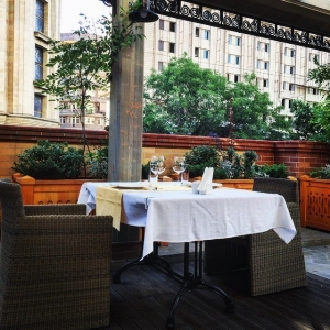 A welcoming cafe in city center, in the backyard of which you can find an open air cafe with a small garden.