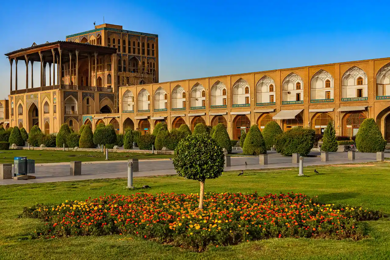 Begin your city tour with a visit to the Chehel Sotoun Palace, meaning “Forty Columns” in Persian. Set within a Persian garden, this UNESCO-listed palace reflects twenty slender wooden columns on its portico into a tranquil pool, giving the illusion of forty. Inside, marvel at the intricate mirror work, colorful frescoes, and painted panels that depict royal ceremonies and epic battles.