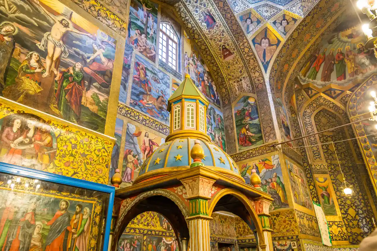 Next, step into a different cultural realm with a visit to the Vank Cathedral, the beating heart of Isfahan’s Armenian quarter. Also known as the Cathedral of the Holy Sisters, this 17th-century church is famed for its combination of Armenian and Persian architectural styles. Inside, you’ll discover vivid frescoes, a richly decorated altar, and a museum that tells the story of Iran’s Armenian community. The word Vank means cathedral in Armenian, and this one stands as a living symbol of coexistence.