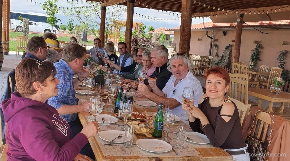 Next discovery will be ,,Karas Winery’’. The visit starts in the viewpoint of vineyard. Starting the tour around reservoirs greenhouses and winery. Wine tasting including Classic Red, Classic White, Sparkling Extra Brut and Rose/Sparkling Semi-Sweet Dyutich.